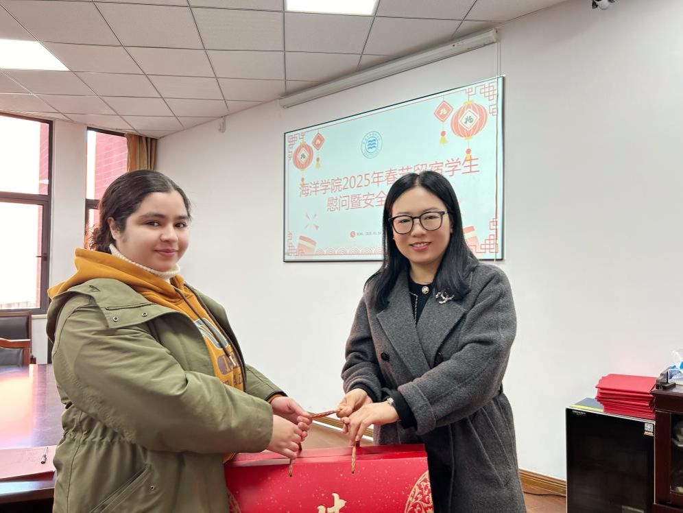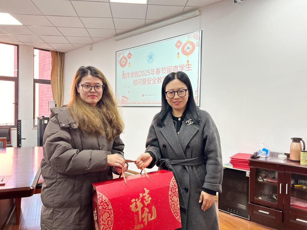 党委副书记张乐、学工办相关老师向20余位新春留校的中国籍学生以及留学生送上祝福。