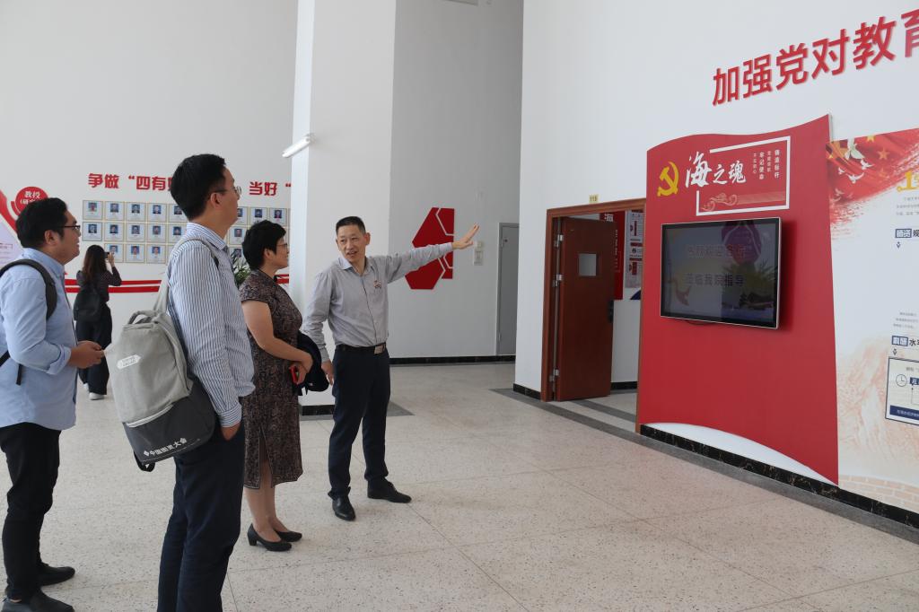 参观交流会上,蔡真亮书记全面介绍了多米体育 党委全国标杆院系的创建情况,逐一介绍了党建馆的陈列内容,双方就标杆院系创建与结题进行了深入探讨与交流。骆巧凤一行还参观了多米体育 水产养殖试验基地。