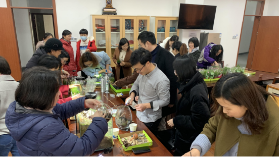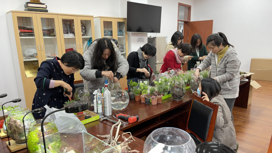分工会组织开展了 “方寸水景、海洋情深”微型水草景观瓶制作活动,庆祝2021年“三八”国际劳动妇女节。