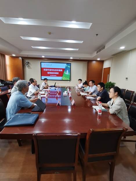 7月23日下午,宁波市生态环境局生态保护处副处长徐洲洲一行5人来校调研,学
