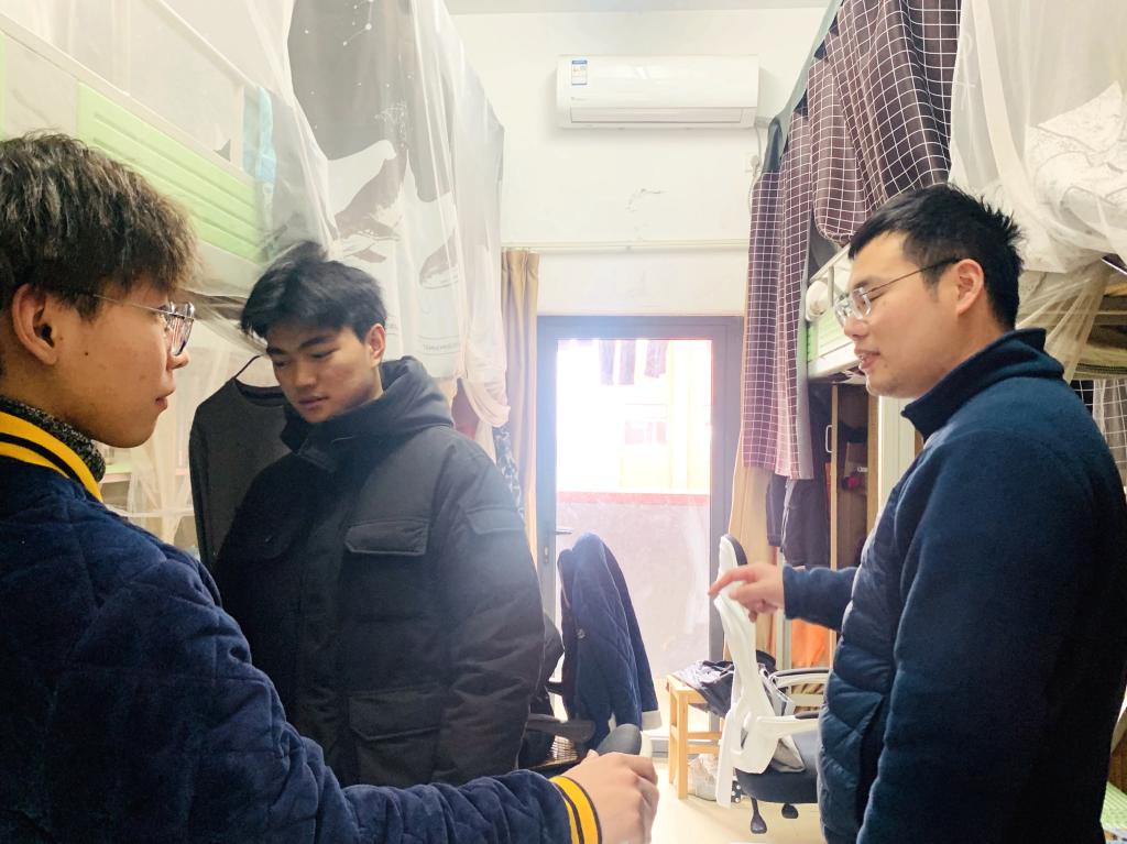 走访过程中,辅导员们详细询问了同学们开学以来的学习和生活状况,有针对性地与同学们进行了交流,并就同学们关心的缓补考、离校请假、外出实习等问题做了详细地解答。辅导员们还询问了同学们此次返校的交通方式,叮嘱他们即使身处校园,也要避免外出聚集,认真做好疫情防控工作,做到勤洗手、勤通风。