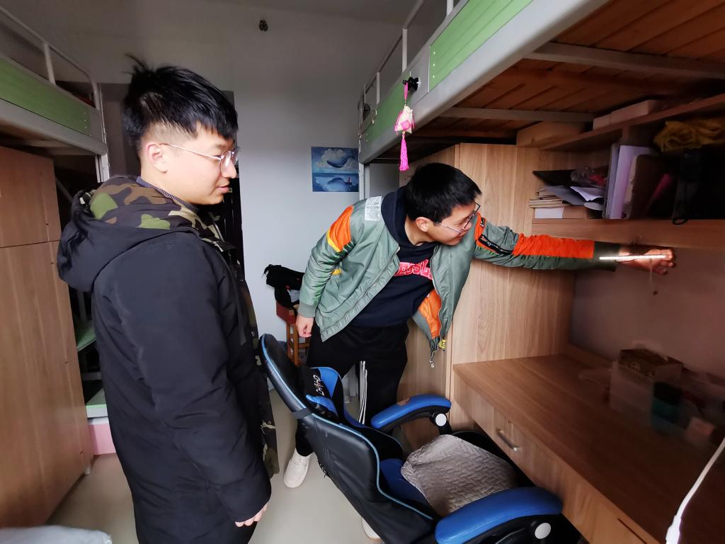的辅导员们深入学生宿舍,了解学生开学返校、宿舍卫生、疫情防控等情况,为返校学生送来了关心和慰问。