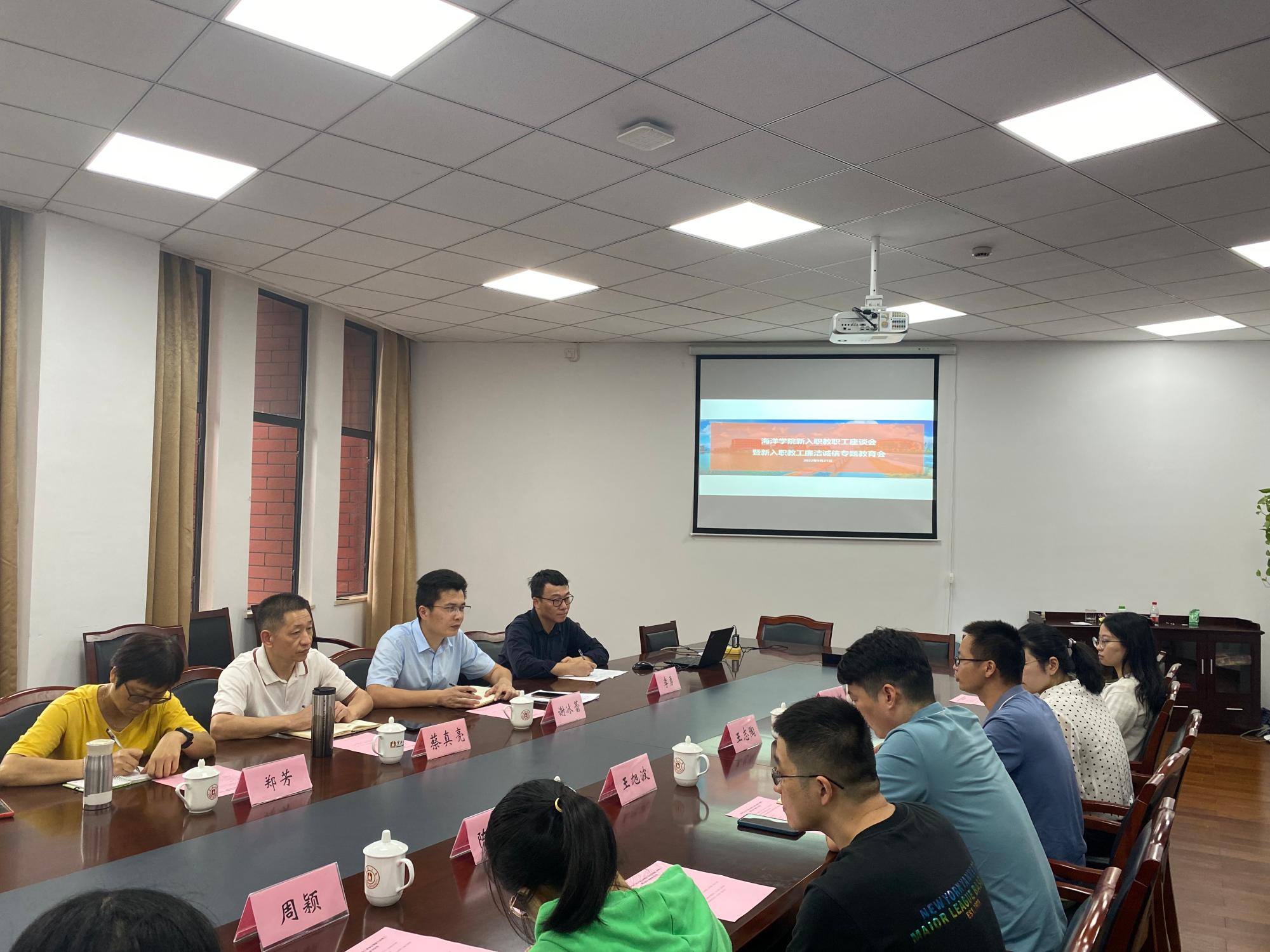 党委书记蔡真亮、副书记兼纪委书记谢冰蕾、党政办主任、组织员和7位新进教职工参加了会议。