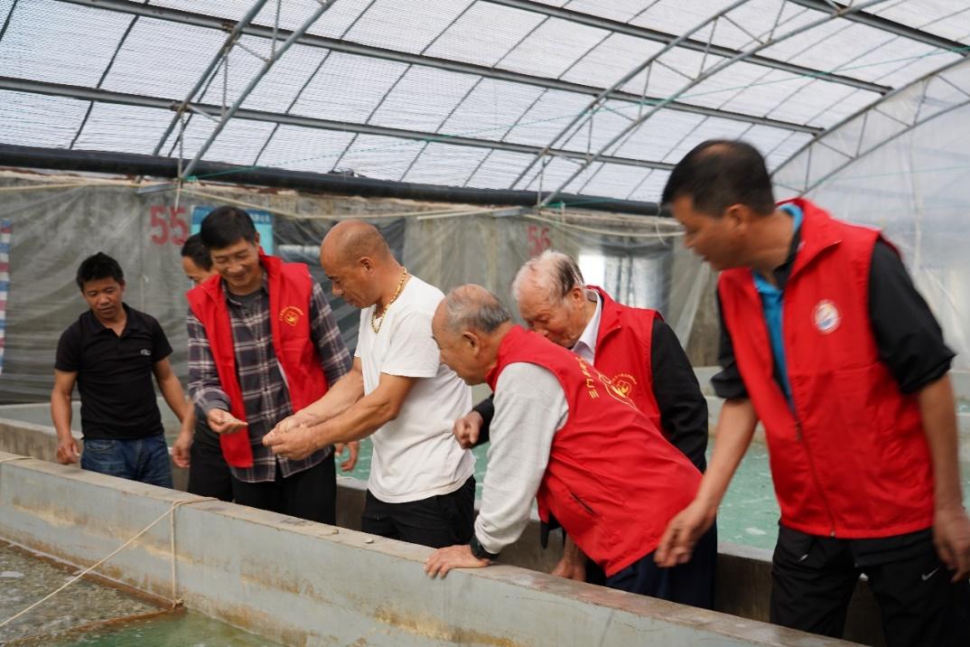随后,老干部们参观了亲本越冬及苗种培育车间,并详细了解了三门青蟹的苗种培育过程。