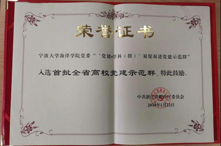 2019年,多米体育 党委入选浙江省首批高校党建示范群