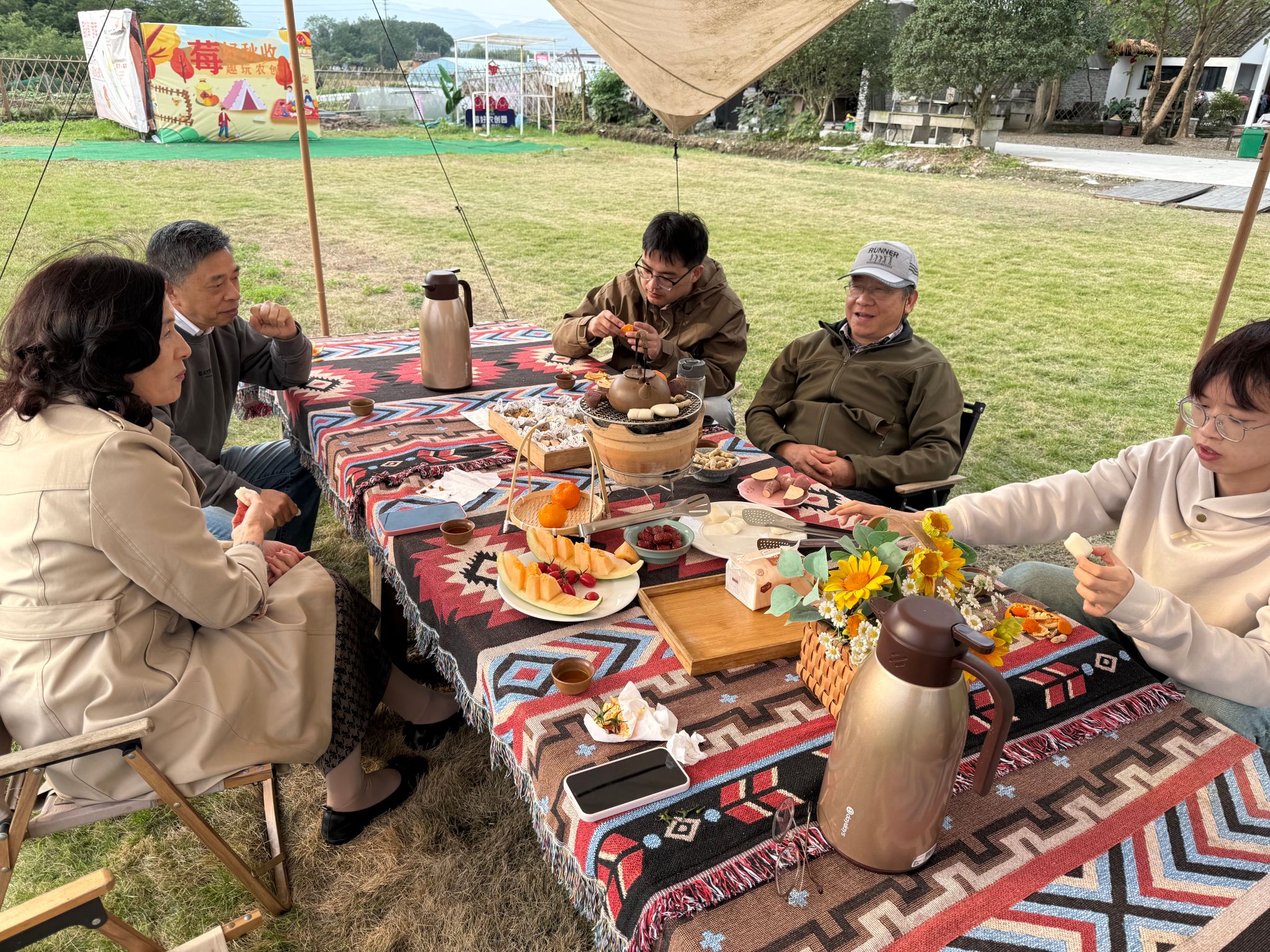 下午,稍作休整后,大家乘坐大巴来到了农创园进行围炉煮茶,退休教师与院领导围坐畅聊,就各自的生活进行分享,对多米体育